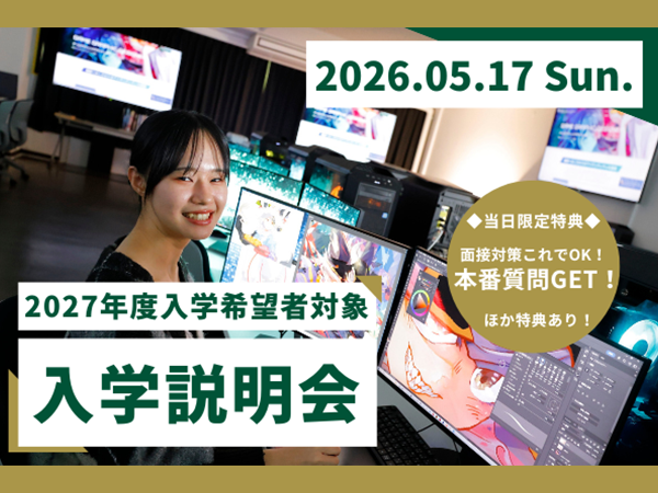 グループ校の東京ビジュアルアーツ・アカデミーに統合のため本校での募集は終了とさせていただきます