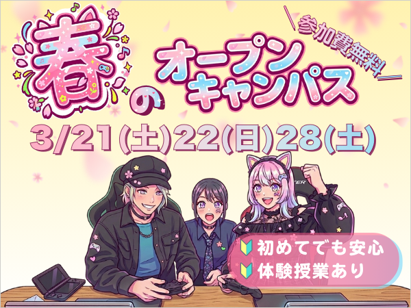 AO2.5年教育、在学中から制作授業、徹底的就職サポート、