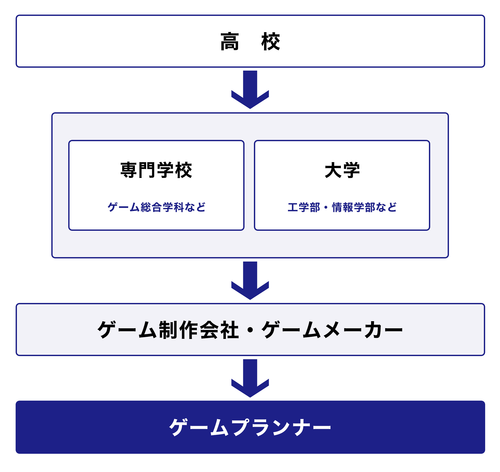 多くのゲーム会社は専門学校や大学卒業が必要要件となっているため、専門学校や大学に進学します。学部や学科の決まりはないことが多いですが、専門学校に進学する場合はゲーム系の専門学校の方が業界との結びつきが強いのでおすすめです。
